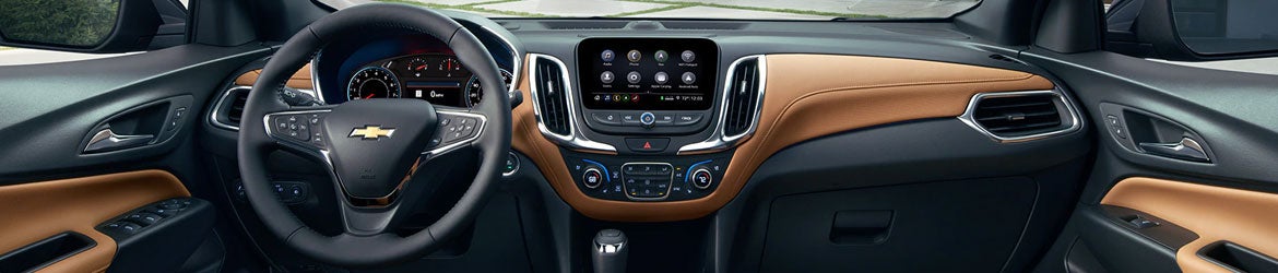 The Equinox's five-seater cabin is spacious and filled with fun features. The rear seats fold flat to give you up to 63.9 cubic feet of cargo space, and you'll find even more storage space under the cargo floor. With the smartphone-compatible 7-inch touch-screen display, you can access playlists, get navigation assistance, and make hands-free phone calls. If you opt for the LT, you can take advantage of heated seats and a heated steering wheel. The Premier's seats are also heated and feature luxurious leather trim and a driver memory function.